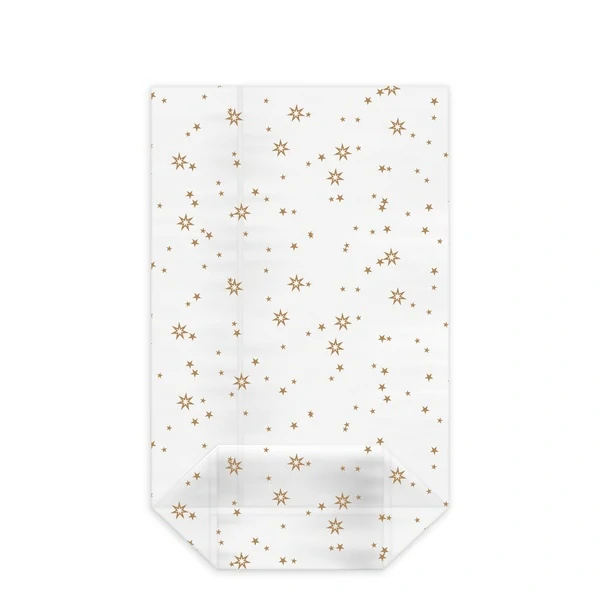 Sáček čirý (OPP) s křížovým dnem Hvězdy zlaté 14,5 x 23,5 + 6 cm [100 ks]Skladem132 Kč/ bal109 Kč bez DPH